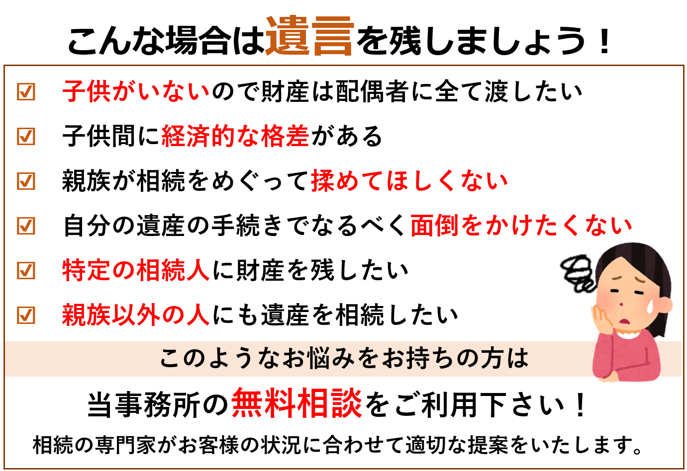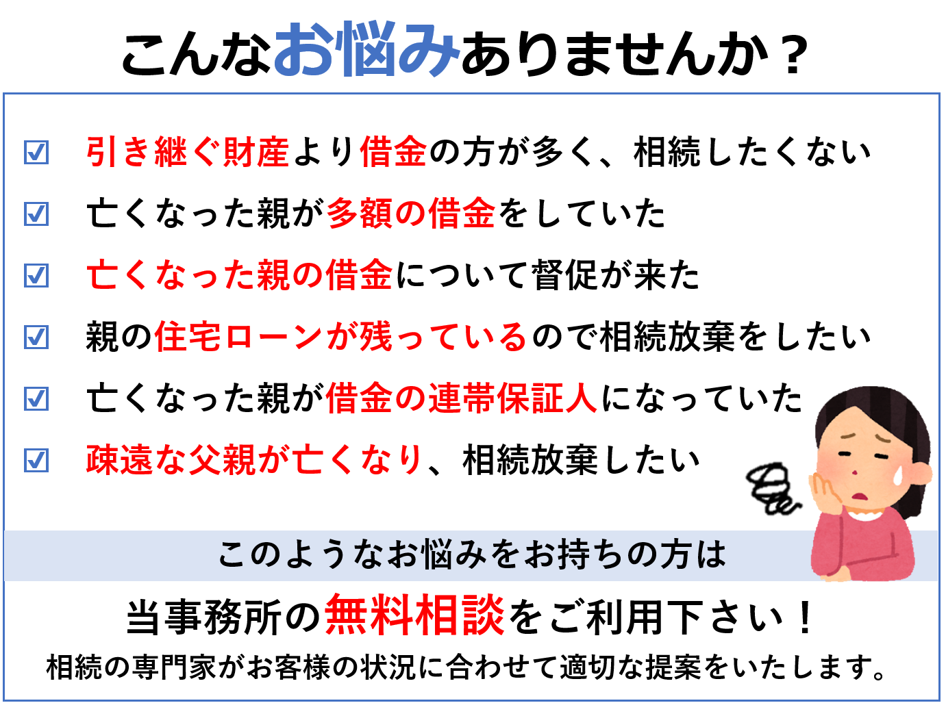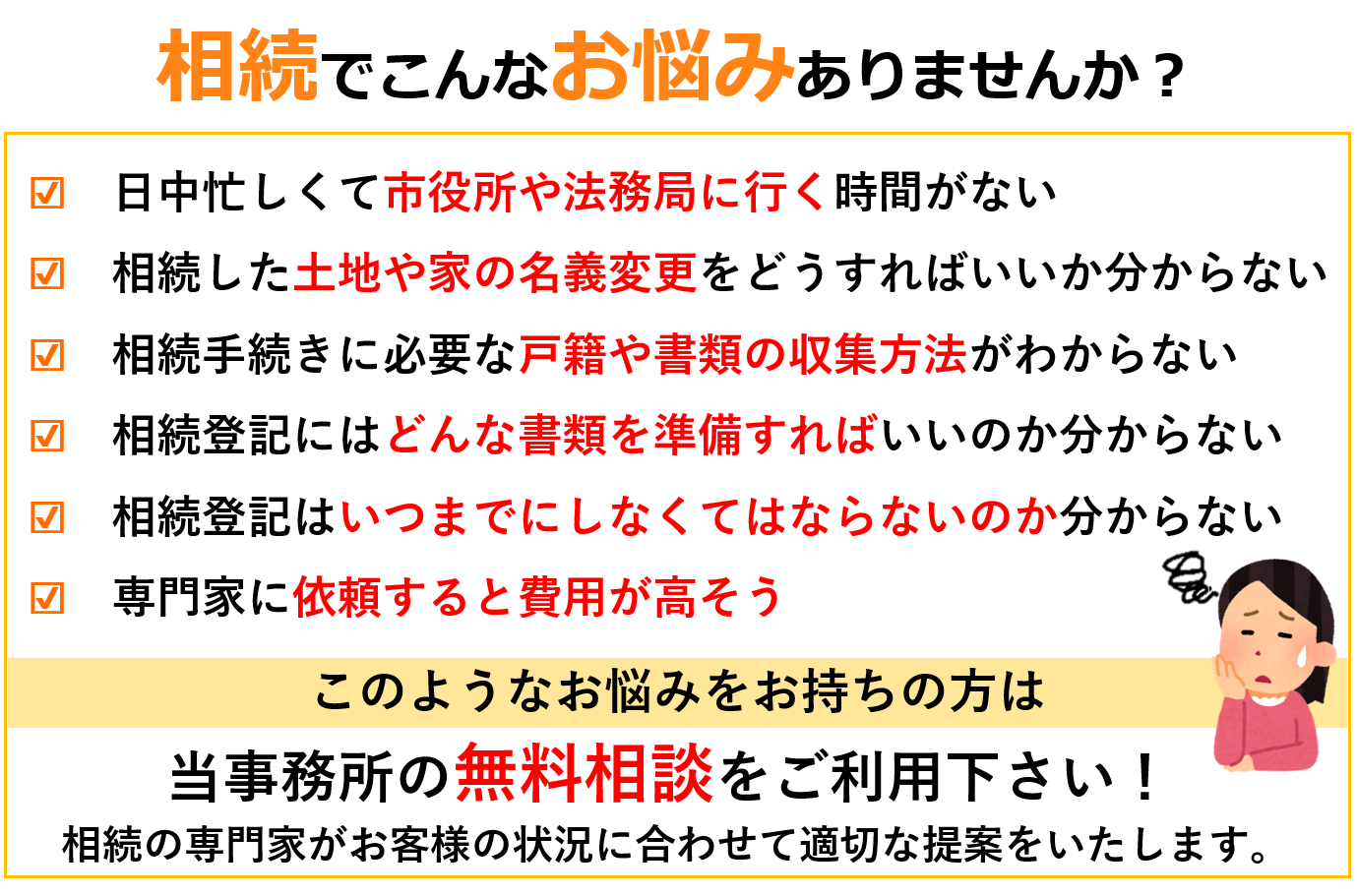 相続でこんなお悩みはありませんか?_無料相談